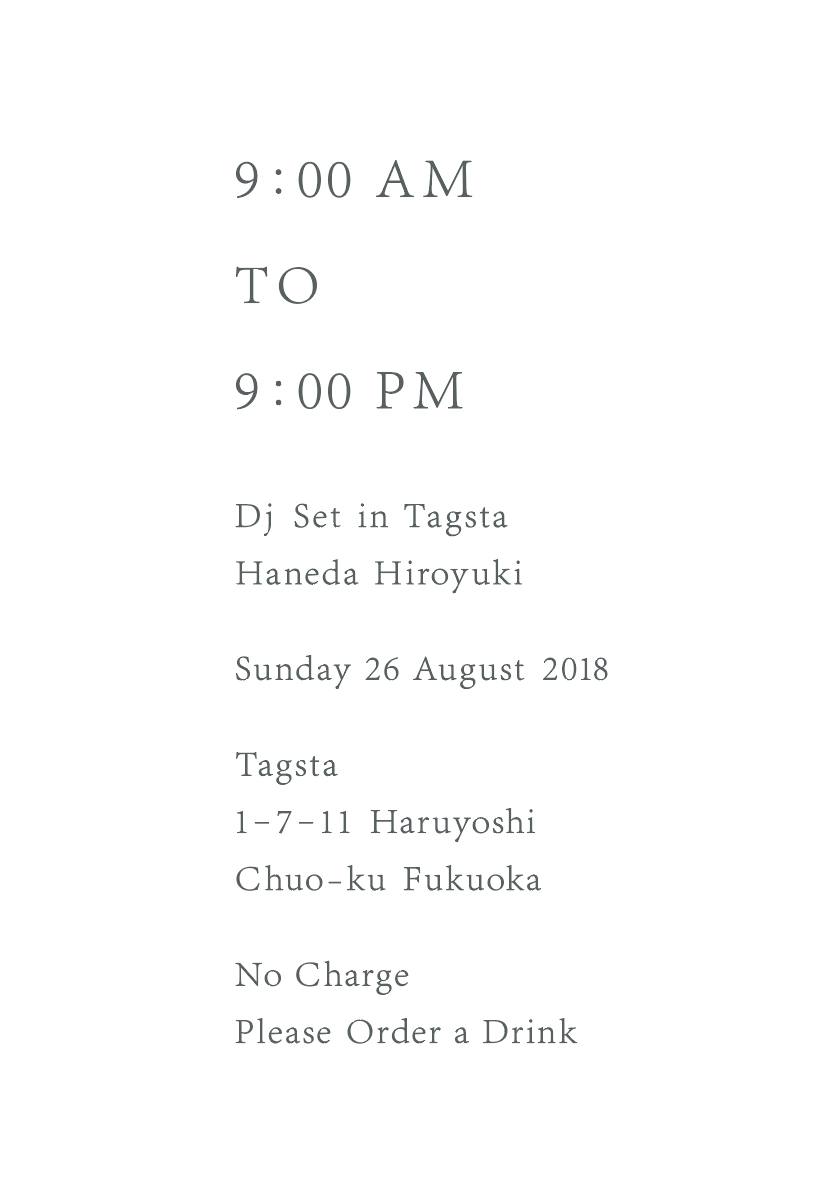 EVENT_ 9:00 AM to 9:00 PM LIFE MUSIC LIVE INSTALLATION 日 程 :2018.08.26(日) ~ 2018.08.26(日) 会 場 :TAGSTÅ GALLERY 時 間 :9:00~21:00 入場料 :無料 SCENE_